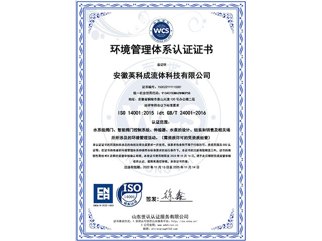 安徽英科成流體科技有限公司位于黃山腳下長江之濱的中國古銅都-安徽省銅陵市。公司注冊資金1.1億,是國內(nèi)一家專業(yè)致力于給排水行業(yè)系統(tǒng)解決方案、閥門以及智能閥門技術(shù)研發(fā)與生產(chǎn)銷售服務(wù)為一體的企業(yè)。 我們擁有完善的質(zhì)量控制體系和檢測設(shè)備,公司主要的產(chǎn)品有閘閥、蝶閥、偏心半球閥、液控蝶式止回閥、靜音止回閥、橡膠瓣止回閥、活塞式流量調(diào)節(jié)、錐型閥、節(jié)能型泵控閥、倒流防止器、減壓閥、排氣閥、排泥閥、伸縮器、閘門、啟閉機(jī)等二十多個(gè)系列,可以充分滿足客戶的一站式需求。……